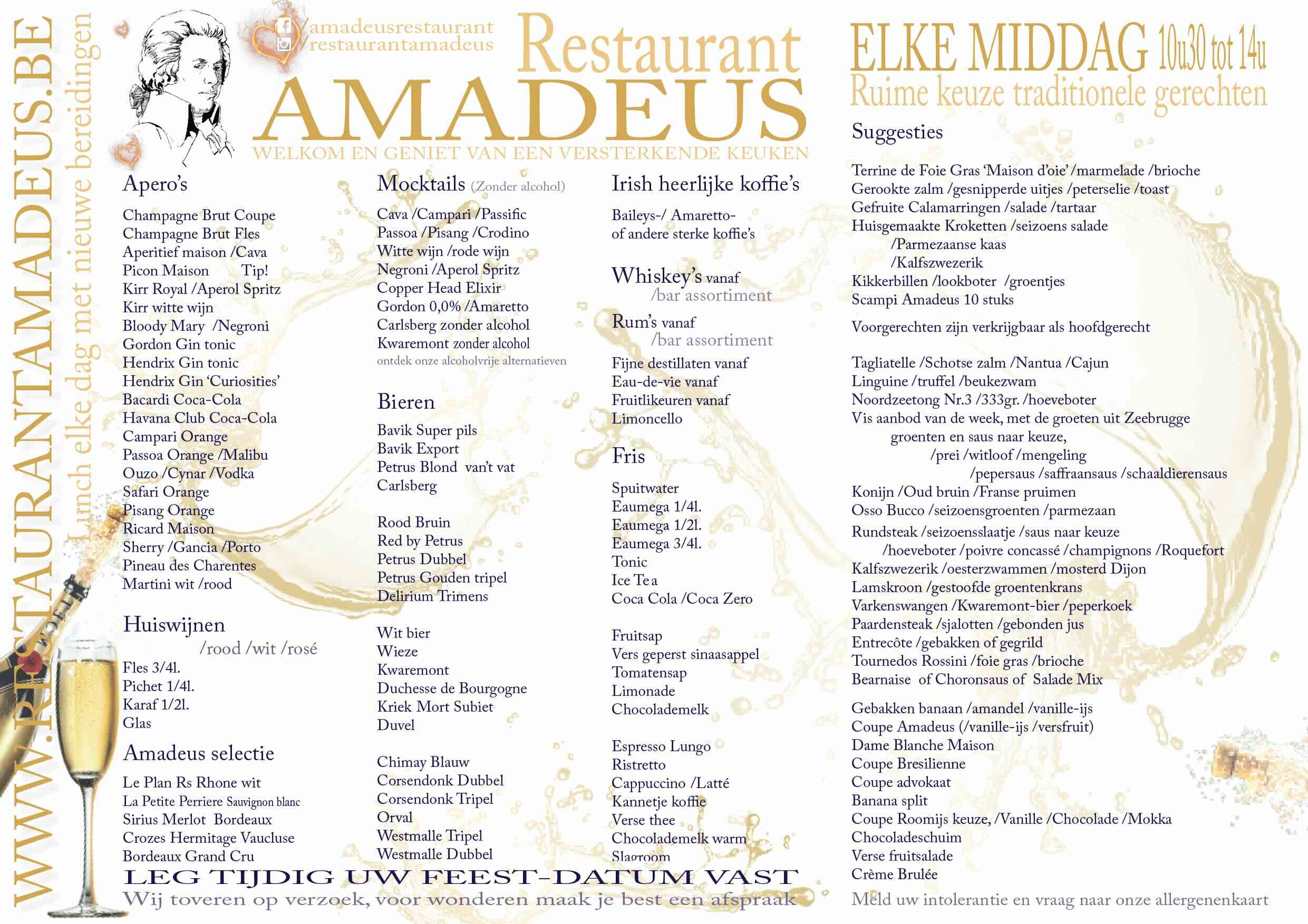 Restaurant Amadeus, sinds 1985 het lekkerste restaurant met /Dagschotels /Lunch /Menu's